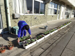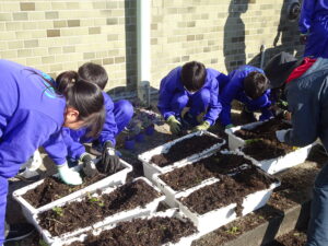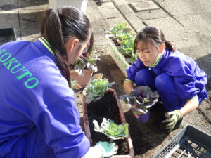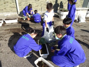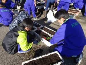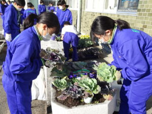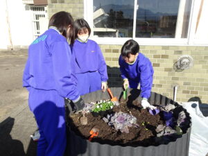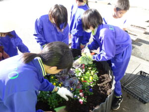 10月30日(木)、環境美化委員会がプランターに花の苗を植えました。ビオラや花キャベツを手際よく植えていました。校舎前がはなやかになりました。
