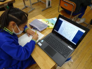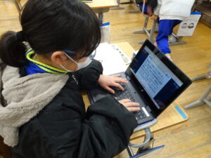 12月24日(水)、ランチルームで2学期終業式を行いました。長かった2学期も今日で終わりです。本多校長先生は式辞の中で「2学期は、自分の考えをもって学習を頑張りました。いろいろな体験活動を通しても、学ぶことができ、みのりの多い2学期になりました」また、「思いやりの気持ちで人に優しくでき、何事にも粘り強く取り組むことができました」と話されました。さらに、「明日から冬休みです。交通安全に気を付けて生活し、家族や地域の人にもあいさつをしましょう」と話されました。この後、各学年の代表児童が、2学期に頑張ったことを発表しました。「自学ノートを頑張った」「運動会のリレーを頑張った」「稲刈りを頑張った」などの発表がありました。最後に、「命を守る」「運動や勉強をする」など、冬休みの生活についてのお話がありました。