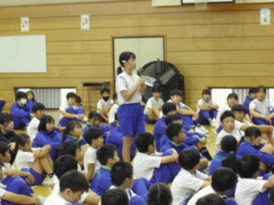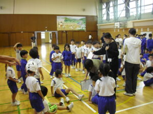 10月8日(水)、朝の時間になかよしタイムを行いました。いつものように縦割り班になって、鬼ごっこやドッジボール、リレー、遊具遊びなどを楽しみました。汗をかきながら走っている姿がたくさん見られました。6年生が中心となって行う振り返りでは「けががなく活動できた」「みんな一度はボールを投げられたらよい」などの意見が出ていました。
