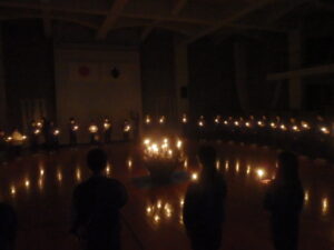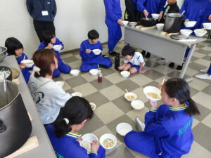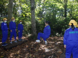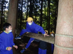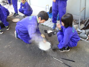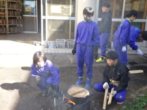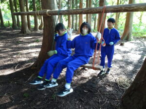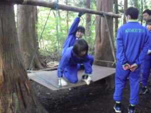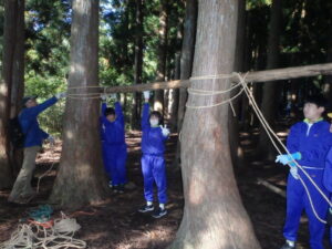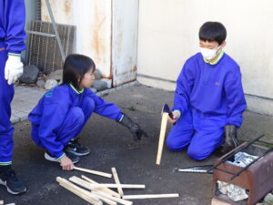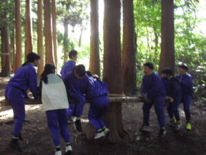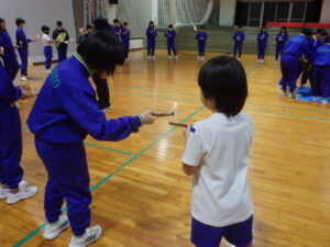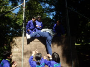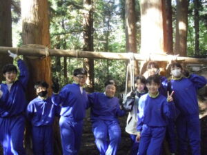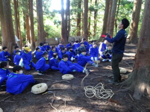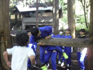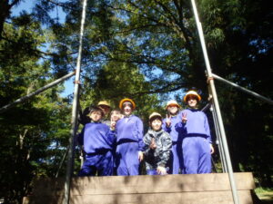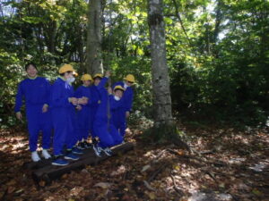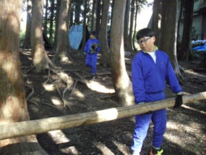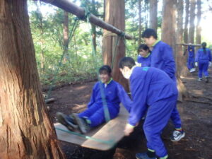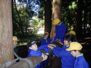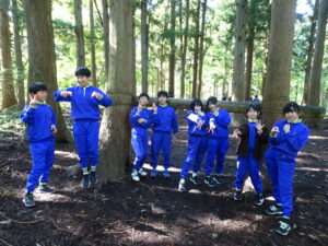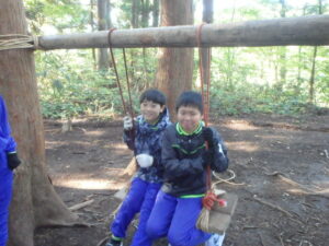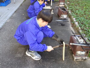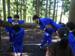 10月23日(木)~24日(金)に、国立立山青少年自然の家にて5・6年生が宿泊学習を実施しました。天候にも恵まれ、8時20分、出発式のあとバスに乗り出かけました。午前中は「ジョイフレンド」、昼食後に「森の遊び場づくり」を行い、ブランコやシーソーなどを皆で協力して作りました。夕食後、キャンドルサービスをしました。幻想的な雰囲気を味わった後に、楽しくゲームを行いました。2日目は、「野外すいはん」を行いました。かまどで火をおこし、鍋でご飯を炊き、豚汁を作りました。鍋でご飯を炊くことは初めてのことでしたが、とても上手にできました。班ごとに食べましたが、自分たちで作ったご飯と豚汁はとてもおいしかったです。宿泊学習では、一人一人が自分の役割を果たしていました。また、力を合わせて活動することもできました。たくさんの思い出ができ、とてもよい宿泊学習となりました。宿泊学習で身に付けたことを、学校生活でも発揮して今後も活躍してくれることを期待しています。