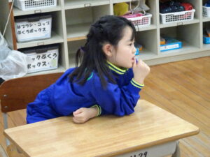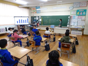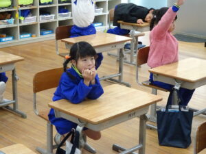 10月31日(金)、10月10日の「目の愛護デー」に合わせて、1年生が目のあいごに関する授業を行いました。テレビを近くで見たり、スマホの使い過ぎやゲームをし過ぎたりすることは目によくないと教えてもらいました。また、目の健康を守るためにどうすればよいかを考えました。「テレビははなれてみる」「ゲームはじかんをきめてする」などの意見が出ました。この学習をきっかけにして、目のあいごの気持ちが高まるとよいですね。