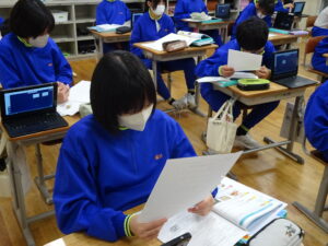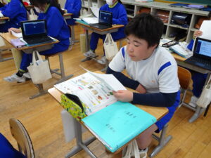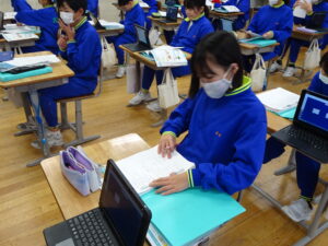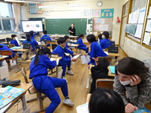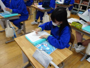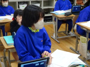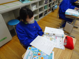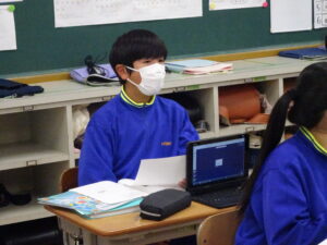 12月8日(月)、5年生が外国語科で、学習課題「値段の言い方になれよう!」の学習をしました。2人でペアになり、「How much is it?」「It’s 500yen.」などとやりとりをしました。値段の言い方や数字の言い方に慣れることができました。
