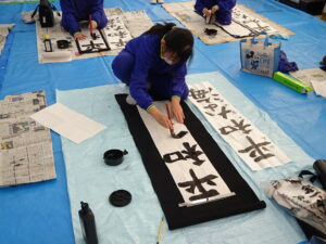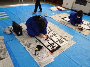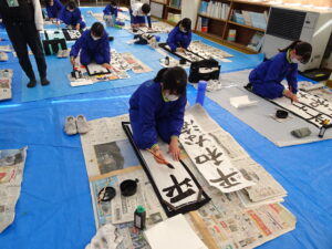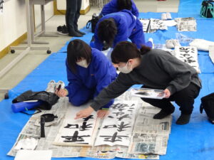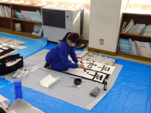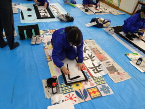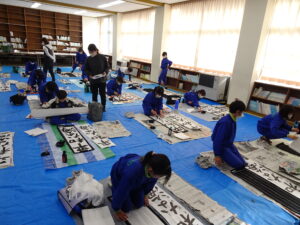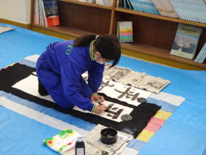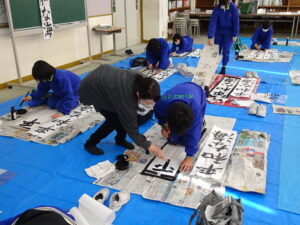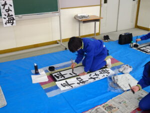 12月18日(木)、5年生で書き初め指導がありました。5年生は「平和な海」を書きます。兵庫 俊子先生に指導を行っていただきました。先生からのアドバイスを受けて、皆集中して書いていました。兵庫先生、ご指導ありがとうございました。