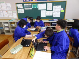 1月9日(金)、5年生が学級活動で6年生を送る会に向けての話合いをしています。この日は、係ごとに分かれて、どのような送る会にしたいかや何を準備すればよいかを話し合いました。「私たちは幕間で思い出クイズをしたいので、6年生にアンケートをとりたい」などと意見を出し合いました。5年生は、6年生の心に残る送る会にしようと頑張って準備を進めています。