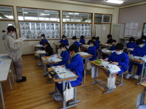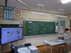 1月16日(金)、5年生が社会科で経済の学習をしています。学習課題は「はん売の仕事では、商品を運ぶまでに情報をどのように活用しているのでしょうか」です。コンビニエンスストアのはん売を例にして、インターネットを使ったはん売やコンピュータで商品管理を行っていることを知り、はん売には情報活用が欠かせないことを学習しました。