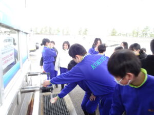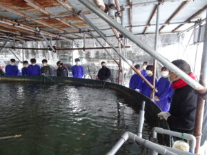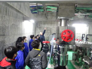 1月28日(水)、6年生がふるさと学習へ行ってきました。この日は、入善海洋深層水パークと株式会社ウーケの見学をしました。入善町の特色ある施設や企業を訪れて、入善町への理解を深めるとともにふるさとを愛する子供を育成することをねらいとしています。深層水パークでは、深層水の取水方法などを教えていただきました。能登半島地震で取水管が破断したことで、新しい取水管は海底400m以上のところに設置したとのことです。また、深層水を生かしたサクラマスの養殖施設も見学しました。出荷されたサクラマスを使って、ますのすしを作っていることを知りました。