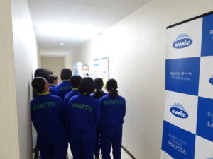 次に株式会社ウーケを訪れ、パックご飯の製造工程を見学しました。入善産のコシヒカリや富富富などを使ったパックご飯をつくっていることを知りました。製造工程でパックの中にほこりや菌などが入らないように、徹底した衛生管理の下で製品が作られていると教えていただきました。さらに、パックご飯のお土産もいただきました。入善町の産業のすばらしさを学習できた一日となりました。入善町キラキラ商工観光課、入善町教育委員会、入善町漁業協同組合、株式会社ウーケの皆様、大変お世話になり、ありがとうございました。