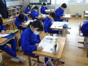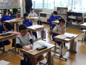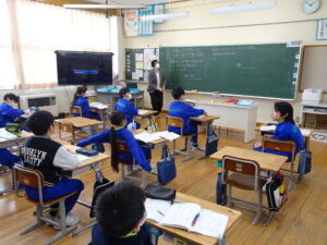 2月6日(金)、午後から学習参観、学級懇談会、中学校入学説明会が行われました。学習参観では、どの学級も意欲的に学習に取り組んでいました。その後、学級懇談会、6年生は学習室で保護者と児童が中学校入学説明会に参加しました。