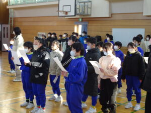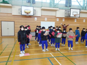 ありがとうの花 2月12日(木)、朝の時間に、6年生を送る会で歌う「ありがとうの花」の練習をしました。1年から5年生までが体育館に集まって歌の練習をしました。6年生のために、こころを込めて歌っています。特に5年生は大きな声が出ていて、さすが上級生だなと思いました。