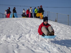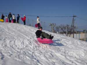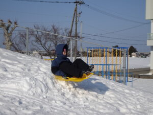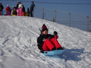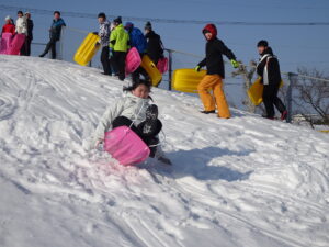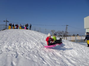 そり遊び 6年生 2月12日(木)、6年生がスキー山でそり遊びをしていました。朝からよく晴れて絶好の雪遊び日和でした。歓声を上げながら楽しくそりをしました。6年生にとっては、スキー山で遊ぶことができるのもあとわずかとなりました。