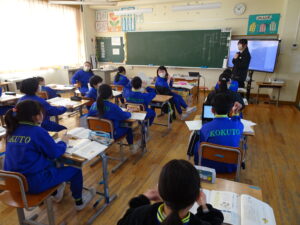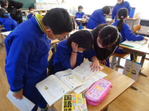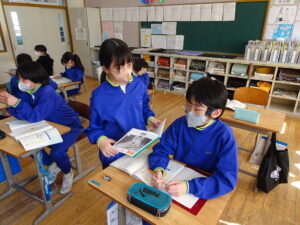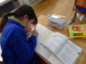 2月24日(火)、4年生が国語科で「心が動いたことを言葉に」を学習しています。日々の生活の中で心を動かされたことを思い出し、詩にして伝え合うという学習をします。まず「心が動いた」とは、どのような気持ちのことか話し合いました。次に、最近どんなことに心を動かされたか思い起こして、ノートに書き出していました。