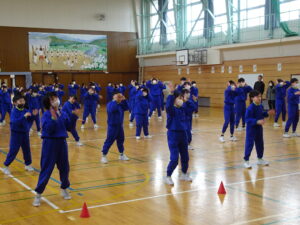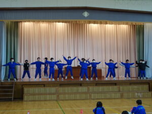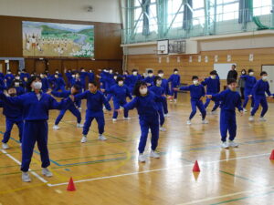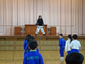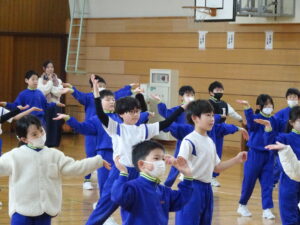 3月6日(金)、2限、3限目に全校児童でダンスの練習をしました。町内でダンス教室を開いている、上田優佳先生を講師としてお招きして、上学年と下学年に分けて練習しました。ストレッチ体操の後、音楽に合わせて踊りました。子供たちはよく体が動いていました。下学年は、最後にステージで発表もしました。運動会の発表に向けて、これからも指導を行ってくださいます。上田先生、ありがとうございました。