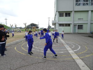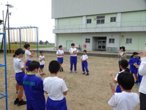 10月8日(水)、朝の時間になかよしタイムを行いました。いつものように縦割り班になって、鬼ごっこやドッジボール、リレー、遊具遊びなどを楽しみました。汗をかきながら走っている姿がたくさん見られました。6年生が中心となって行う振り返りでは「けががなく活動できた」「みんな一度はボールを投げられたらよい」などの意見が出ていました。