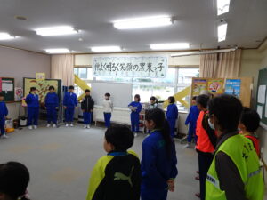 10月21日(火)、入善町さわやかあいさつ運動が始まりました。朝、7時40分から、地域の民生・児童委員や区長会等の皆様、PTA会長様に参加いただき運動を行いました。今回は町内のクマの目撃情報も多いことから、校舎内での運動にしました。朝から元気なあいさつが校内に響き渡っていました。