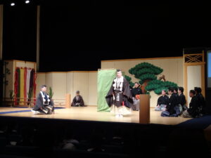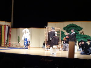 11月18日(火)、文化庁による舞台芸術公演として、5・6年生がコスモホールで能を鑑賞しました。第一部は狂言「盆山」と囃子方の実演、能の役割説明がありました。休憩をはさんで、第二部では、能「黒塚」を鑑賞しました。なかなか見ることのできない能や狂言でしたが、分かりやすく説明があり、言葉もスクリーンに現代語訳が表示されていたので楽しむことができました。