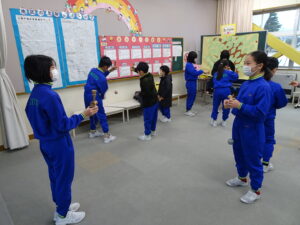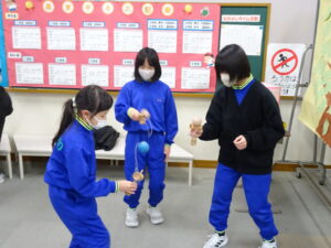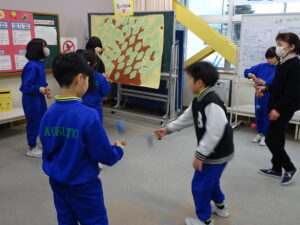なかよしタイム 12月10日(水)、朝の時間になかよしタイムがありました。これからは校内での活動になりますが、体育館やその他の場所で楽しく過ごしました。いつもと同じように、ドッジボール、大縄跳び、カードゲーム、けん玉を行いました。