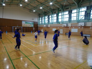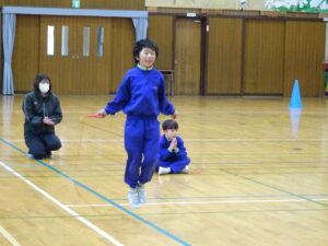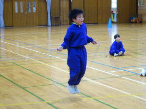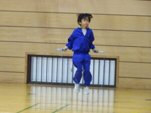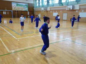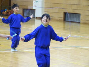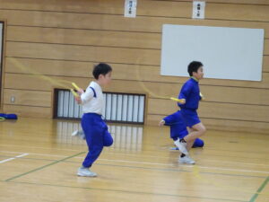 12月15日(月)、3年生が縄跳びをしていました。冬の間の体力づくりの取組として縄跳びをしています。この日は、様々な飛び方に取り組みました。全員で前とびをどれだけとべるか挑戦しましたが、中には3分以上続けてとぶ人もいました。いろいろな技ができるようになると楽しいですね。