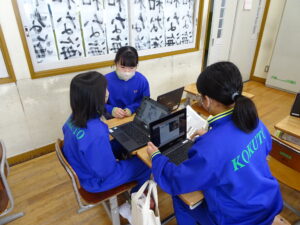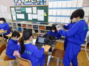 1月20日(火)、5年生が6年生を送る会の準備を進めています。係ごとに分かれて、話合いをしたり、花を作ったりしています。進行のシナリオやプレゼンなどをパソコンを活用して作成しています。これからのリーダーとしての姿が見られてとても頼もしいです。