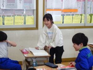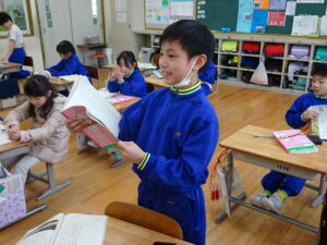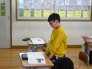 1月28日(水)、2年生が国語科の単元「ロボット」を学習しました。学習課題は「どんなロボットがあればよいか、それはどんなときにたすけてくれるか考えよう」です。「家事をしてくれるロボットあるといい。お家の人がいそがしいときに家事をしてくれるからです」「いっしょにサッカーをしてくれるロボットです。一人しかいないときにサッカーができるから」などと各自が考えたことを発表しました。