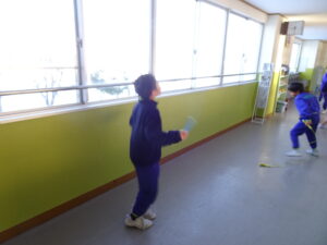 2月10日(火)、朝の時間にさわやかタイムがありました。今朝はとても寒かったのですが、子供たちは元気よく縄跳びをしました。体育館では大縄跳びをしていました。廊下では、一人一人がめあてをもって練習しました。ある子は、二重とびを軽やかに跳んで見せてくれました。
