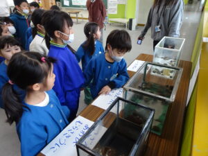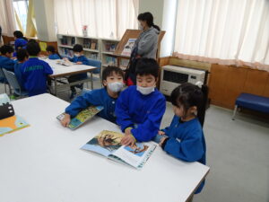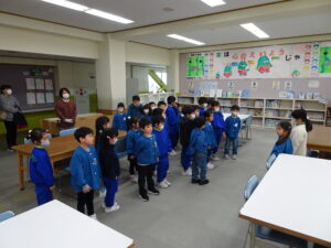 2月25日(水)、1年生がこあら保育所のぶどう組さんと交流会を行いました。一緒に校舎の見学をしたり、遊んだりましました。1年生は、ぶどう組の皆さんと手をつないで、部屋の説明をしながら校舎内を歩きました。図書室では、本を読んであげる子もいました。音楽室では、6年生が合唱練習をしていたので、合唱を聴かせてもらいました。ぶどう組さんは、4月から黒東小学校の1年生です。安心して入学してほしいです。
